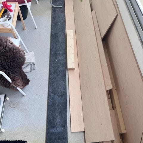 Mdf plater med mønster. Rester etter innredningsarbeider.