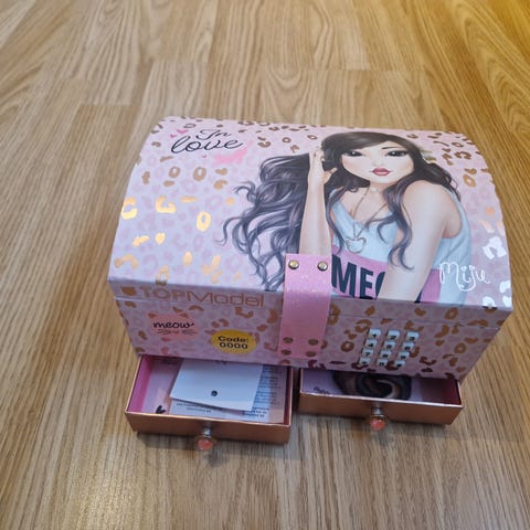 Smykkeskrinet har en sikker kodelås der du kan velge koden selv og som spiller en spesiell TOPModel-melodi i 20 sekunder når den åpnes.