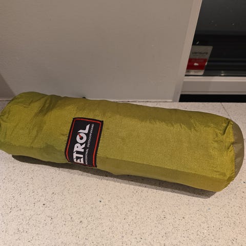Quiltet overtrekk til liggeunderlag. Oversiden er quiltet bomull, det er strikk rundt kanten for å tre på liggeunderlaget. 62cm bredt og 190cm langt. Det har ikke vært brukt )