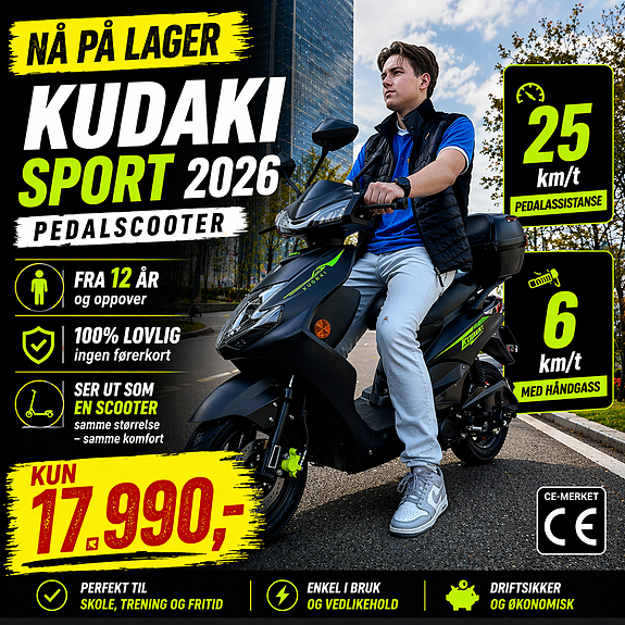 Kudaki Sport 2025, Lovlig uten førerkort, pedalscooter, elsykkel, elscooter Oslo