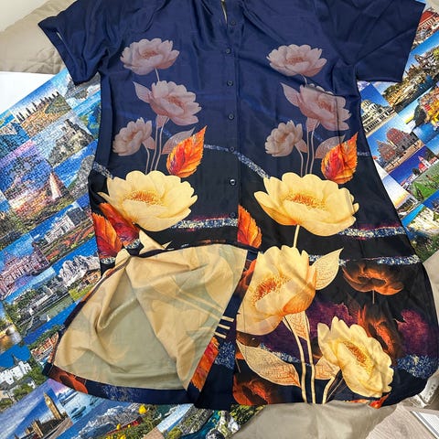 & Other Stories Andre topper i størrelse M, hvit farge. Laget med et mønstret stoff som gir et luftig og dekorativt utseende. Toppen har voluminøse ermer og detaljer med rysjer langs fronten. Egnet som en del av en kvinnes garderobe.