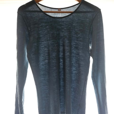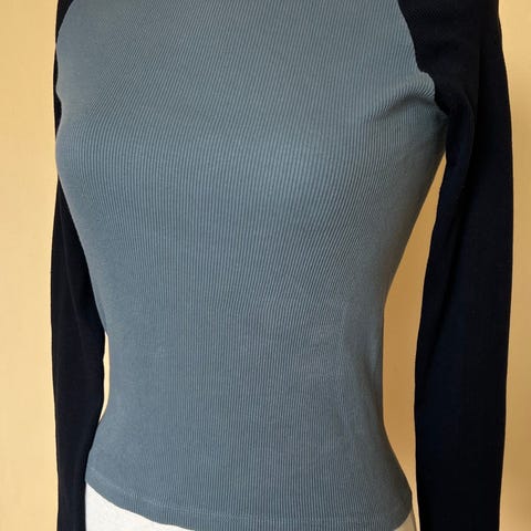 Tynn stretchy blå og hvitstripet genser/topp str small. Pent brukt