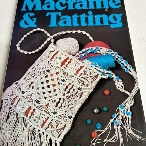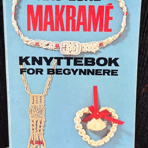 Hvit, makrame bokmerke, ca. 43 cm. Låget av min mor.