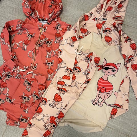 Syns den er litt lang for at være en str 128, men er mudder lengst ned så blir bare litt mer påsete stoff i beine. Tenker det er sånn modellen ska være.