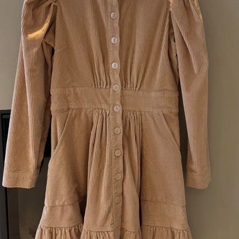 Nydelig sjokoladebrun kjole i myk kordfløyel.