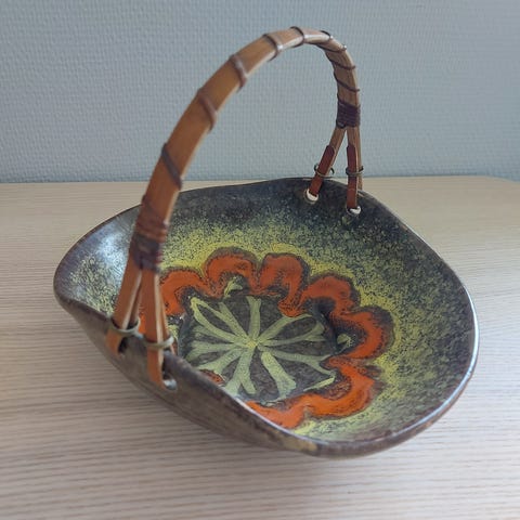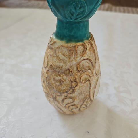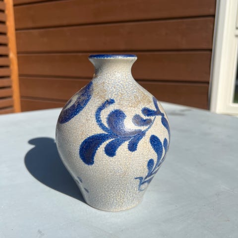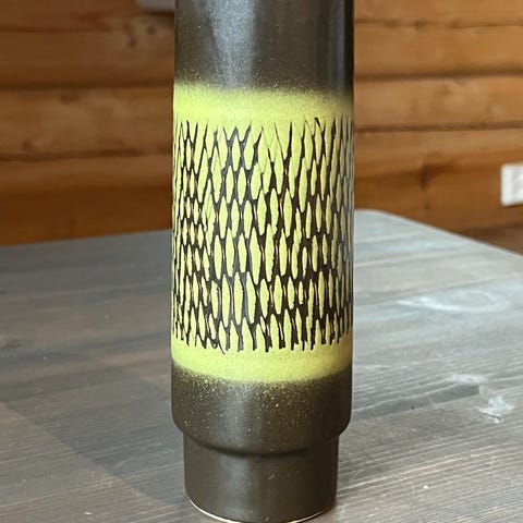 Selger en retro vase i keramikk fra Tyskland. Høyde 14 cm. Fra 1960 tallet.