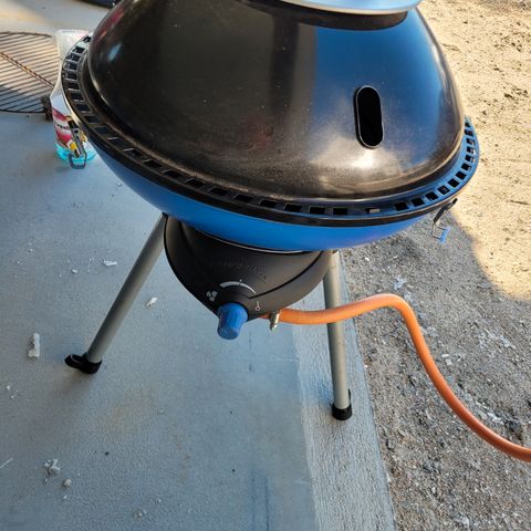 Party grill-modellene har piezotenning og justerbar brenner. Beina er sammenleggbare og får plass i «grillhuset» ved transport. Brukes sammen med Campingaz’ gass CV470.