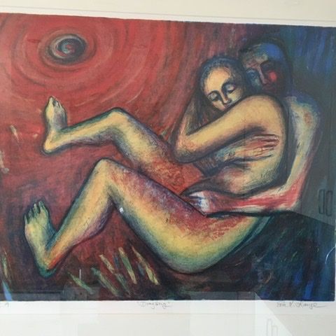 Eva Lange «Eyewitnesses», orginal serigraphy (silkscreen) no. X/130. Står med blyant: til Elisabeth 189.