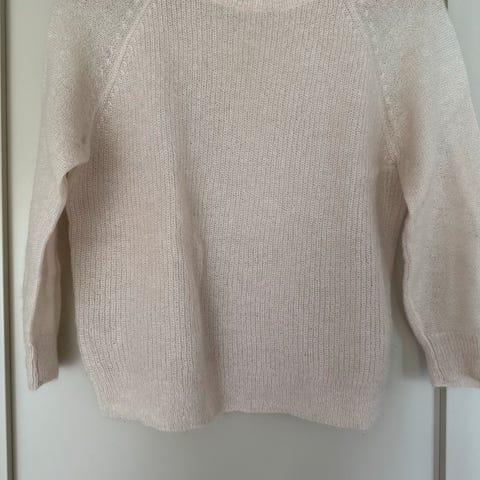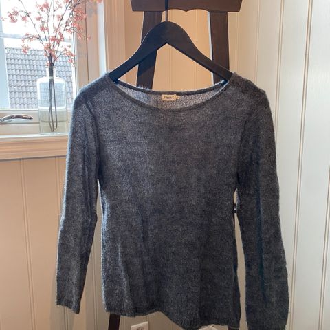 Skjønn genser fra Filippa K i mohair. Lys lys blå. Deilig kvalitet. Lett og varm. Oversized snitt. Dette er en str S, men kan også brukes av M men da uten veldig løs look.