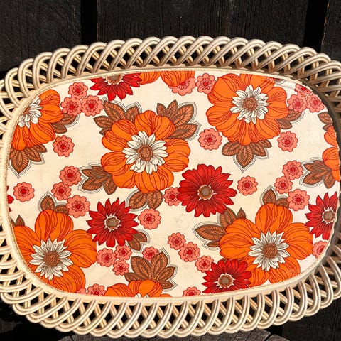 Serveringsbrett fra Dialene better-maid selges for kr 150. Brettet er helt og pent med en liten ripe i dekoren midt på brettet.