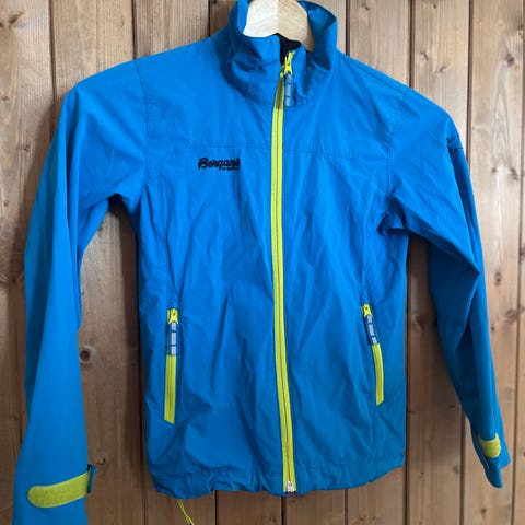 Fin Bergans jakke i str 140. Heller liten enn stor i størrelse synes jeg. Utrolig behagelig jakke. Tynn, med go stretch. Super å ha i sekken.