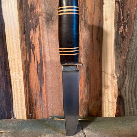Kniven er som vist på bildene. I god stand. Sammenslått er den 9 cm lang. Merket som vist på et av bildene.