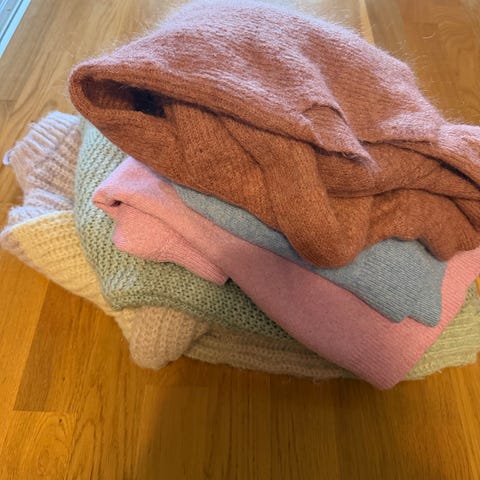 Lilla strikket genser str XS, fra NAKD. Ballongermer, brukt litt mer enn de andre, men ikke mye.