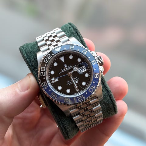 Tilbehør: Watch only, original lenke, inkl Rolex pouch, GMT Master brosjyre, og for øvrig alt på bildene