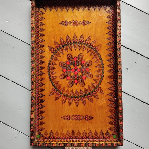 Flott gammel skjærefjøl/skjærebrett i tre selges. Kun vært brukt som pynt. Noe bruksmerker kan forekomme. Selges som de er. Se bilder.