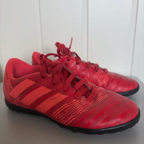 Fine Adidas fotballsko i størrelse 32. Gode sko som gir god ballkontroll. Brukt av ett barn, fremdeles mange spark igjen i disse.