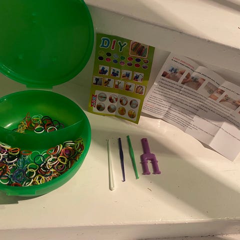 Stor pakke med loom strikker til å lage ulike saker, armbånd osv. selges kr 300,-