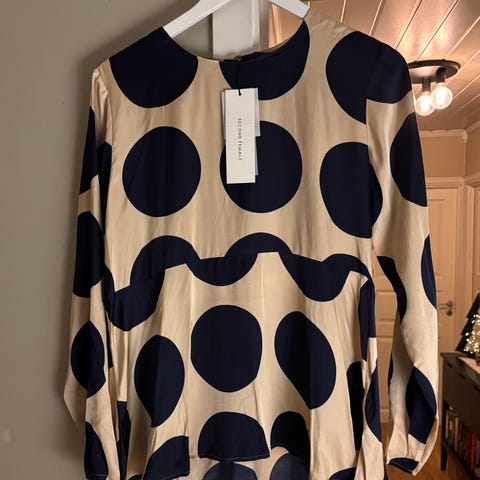 Lekker bluse fra Second Female. Kan styles opp eller ned. Svært lite brukt. Modell: Gaura Shirt Crockery. Ny pris: 1000.