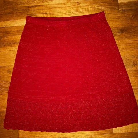 Karen Millen skjørt i nydelig rødfarge. Str 38. Pent brukt. Ca 56,5 langt til skjørtekanten (med blondene 59-60 cm). Selges til redusert pris fordi glidelåsen er litt "treg". Hentes eller sendes mot frakt.
