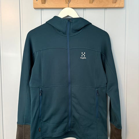 Pent brukt mellomlagsjakke til dame, med fleece på innsiden og strechy materiale. Noe slitasje iform av nupper, men jakken fremstår som fin og uten andre slitasjer.