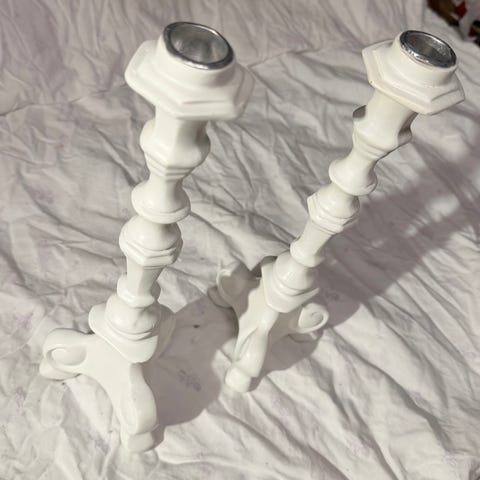 Lysestaker i gullfarget aluminium. Bare stått til pynt. Høyde 12,5 cm. Selges samlet for 150,-