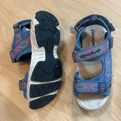 Sandaler fra Okaki, brukt tre ganger da de ble kjøpt for små. Str 30