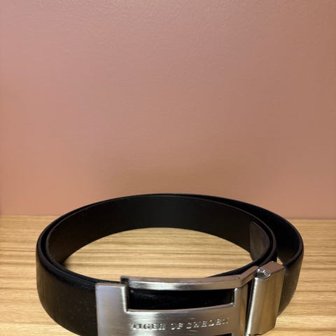 Svart skinnbelte fra Tiger of Sweden selges billig.