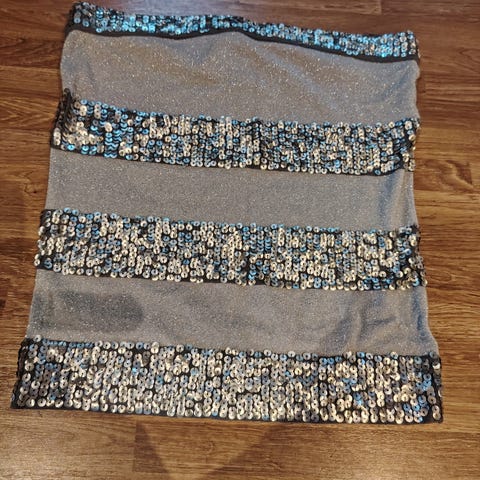 Tilstand . Kun brukt en gang. Sort strikk m kobbertråder . Stilig til fest og hverdag.