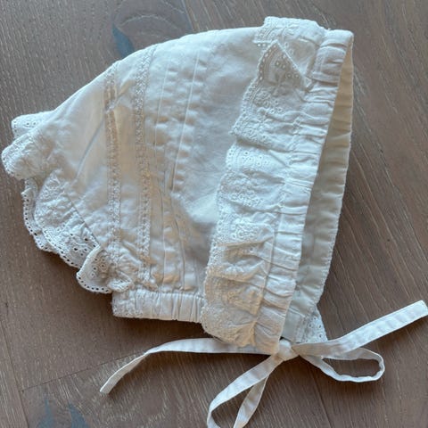 En utrolig fin jumpsuit fra Hust and Claire i str 74 (6-9 mnd) selges med solhatt som tilbehør. Søte og elegante blondedetaljer gjør seg utmerket på fotografering, til hverdags men også i fine selskap.