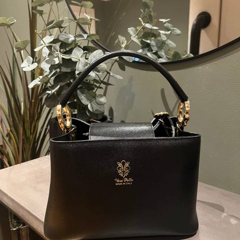 Veske fra Treats sort selges. Brukt ved en anledning. Bredde 22 cm høyde 18 cm dybde nederst 7,5 cm. 1 stort rom med glidelås. Kan sendes mot at kjøper betaler frakt. Prisen er endelig. Kun vipps.