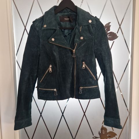 Kul og røff lærjakke i damesnitt, størrelse S. Perfekt for et urbant og tøft uttrykk, samtidig som den er behagelig å bruke.