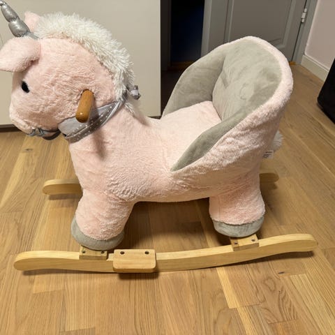 Enhjørning gyngehest selges for 400 nok. Pent brukt ingen slitasje etc.