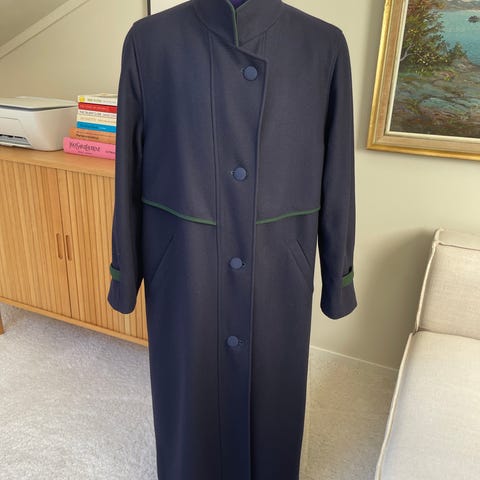 Varm, oversized vintagejakke i nydelig koboltblå farge med skotskrutet innside. Vattert fór i ermene innvendig. Lommer i sidene (ps. hull i den ene lommen, kan sikkert fikses). Ellers i god vintagestand. Dette er en jakke i god kvalitet;