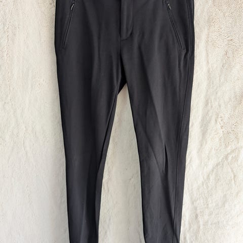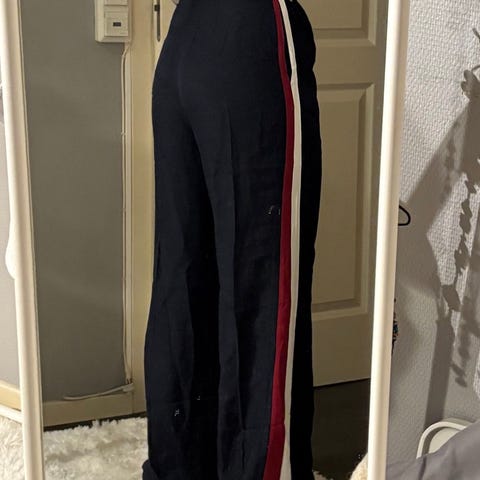 Selger en stilig bukse i stoff av ull og polyester, med silkeaktig stripe på sidene
