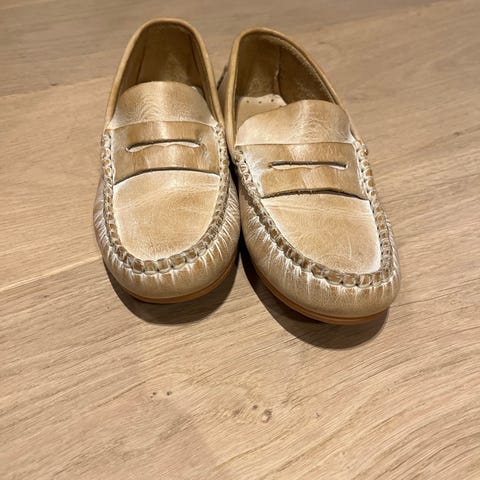 Brukte hvite seilersko i skinn fra RAP str 28. Kjøper betaler porto.