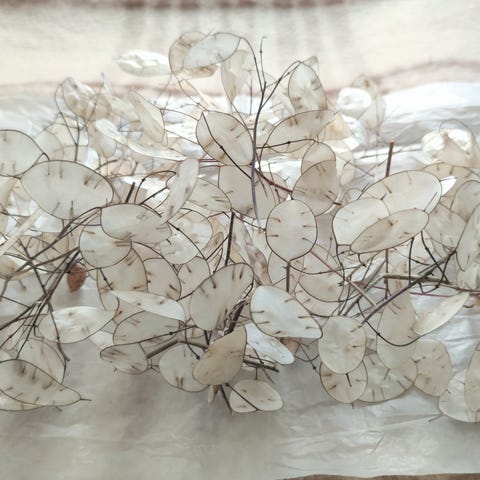 Lunaria annua / Sølv penger plant er en luftig dekor plante som har naturlige organiske form og spiller fint med nøytrale farger.