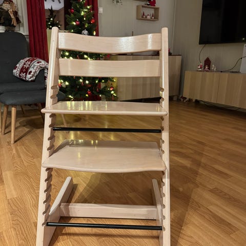 Pen svart malt tripptrappstol. Gammel type. Noen bruksmerker. Må hentes.