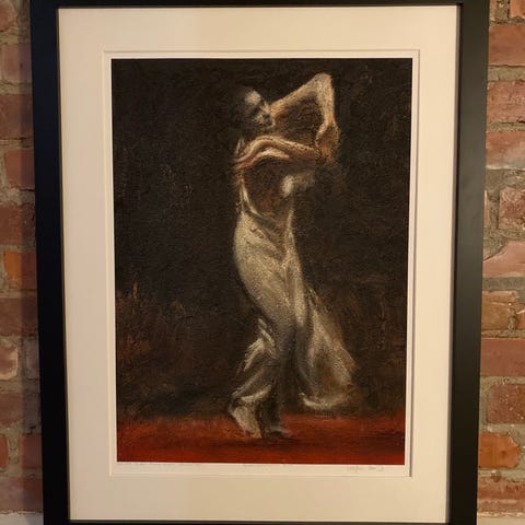 Studie i lys, Litografi av Vebjørn Sand selges. Bilde er signert og notert med "prøvetrykk, håndkolorert" og er derfor ikke nummeret. Det er laget 130 stk som nummeret iht. Fineart Oslo sin side. Ramme måler 97x75 cm og selve bilde måler 67x47 cm. Ramme er fin, men ikke feilfri. Det er vanskelig å ta bilde uten refleksjoner i glasset, dette ødelegger litt opplevelsen på bilde her i annonsen. Bør ses i virkeligheten for at få rett inntrykk av hvor fine farger og komposisjon det har. Pris er inkludert lovpålagt kunstavgift som besørges av meg.