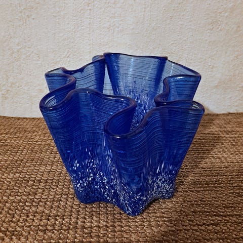 Tulipan-vase i Koboltblått glass/krystall. Håndlaget/munnblåst