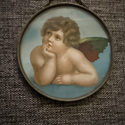 Skytsengel Bilde. 34 x 44 cm. Flott gammeldags englebilde