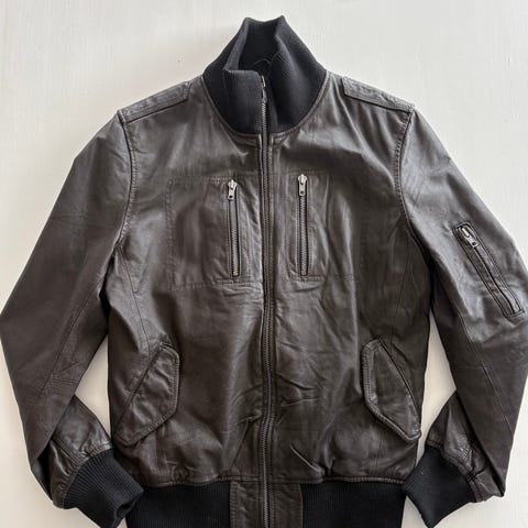 Myk og behagelig jakke i 100% lammeskinn. Noe bruksmerker som er typisk for skinn. Stilig rutete innerfor.