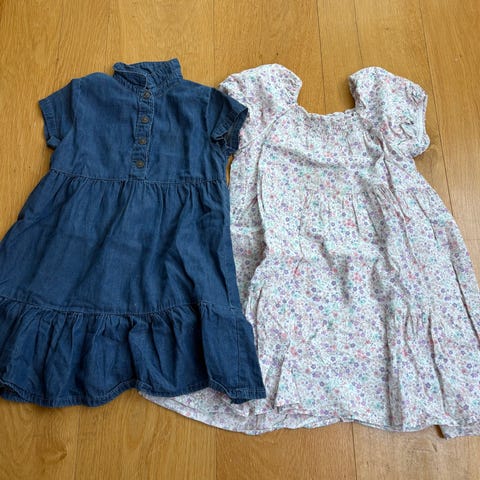Pakke med kjoler og et sett med tykk jakke og skjørt.