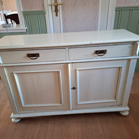 Overdel av et eldre framskap. Topplist kappet på venstre side, ellers helt og i orden.