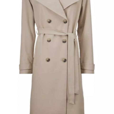 En perfekt overgangsjakke. Dobbeltspent med skjulte knapper, klassiske detaljer som klaffdetalj på skuldrene, stormklaff og lommer i sidene og ermer med kappedetaljer på mansjetten. Selger grunnet feil kjøpet.
