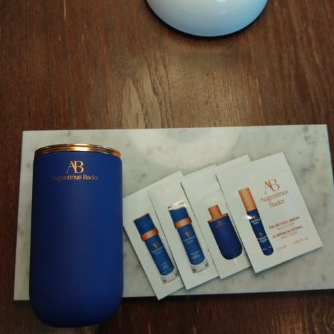 Selger mappe fra Augustinus Bader som var tilleggsgave da jeg kjøpte produkter. Mappen er i plast, mørk blå med brosje eller gullskrift. Dekorativ på badet eller på reise. Ble tipset om å bruke den til vått badetøy.