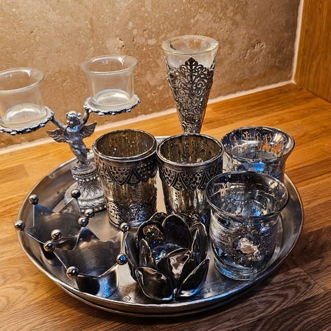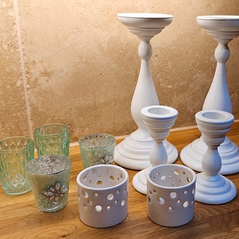FIN TELYSHOLDER (h. 30 cm)Vi legger med en gammel dekorativ lysestake (h. 8,5cm)på kjøpet.