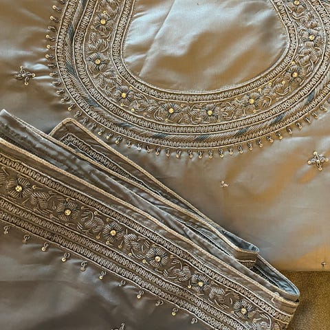 Kjolen er brukt kun en gang i få timer og har ingen skader eller synlige bruksmerker. Alt på kjolen er hand embroidery ingen machine work er blitt brukt på den.