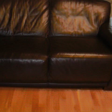 På sofaene: armlenene på sidene er veldig fine, ryggstøtten også, baksiden er som ny.