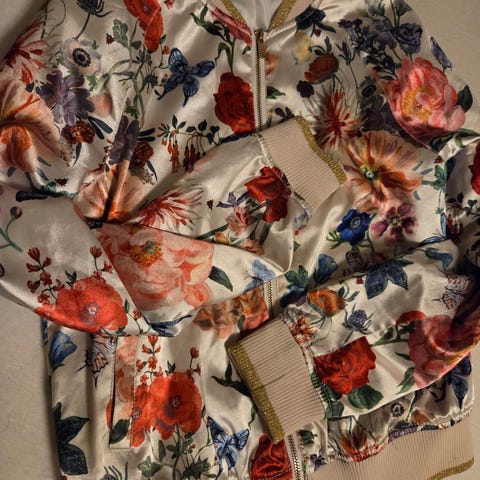 Nydelig kort jakke med gulltråder.