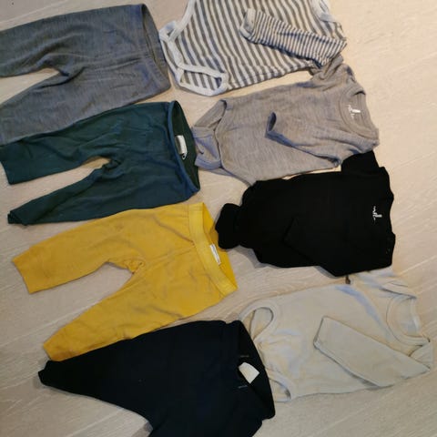Ullpakke i str 62-68 . Ett par flekker/en rift, se bilder. Kan hentes Sverresborg eller sende med fiks ferdig.